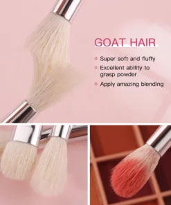we special choose Natural goat pony hair,Natural goat hair Touch skin -friendly and will have ice muscle touch,suitable for all skin types with no stimulation .Natural animal hair are softness like no other.They are fluffy and have excellent ability to grasp powder.It can apply amazing blending and apply makeup evenly. And eyebrow and eyeliner are thin and Precise.