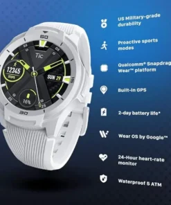 TicSmartwatch S2 Wear OS by Google Smartwatch Built-in GPS 24-Hour Heart Rate Monitor forMen 5ATM IP68 Waterproof forIOS&Android